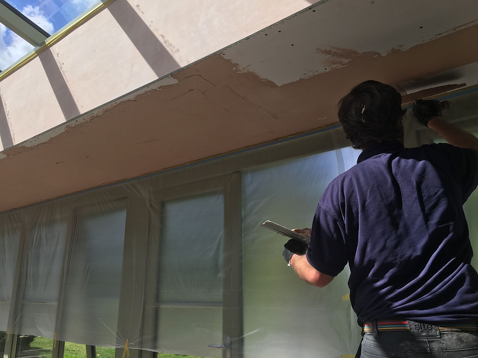 We believe that plastering is like decorating a cake, we have absolute patience and the plaster tells us when its ready to be hand trowelled. You cannot rush plaster and you have to be considerate of the interior and exterior temperature and conditions. Once we are 100% happy with our finish we will leave it to dry for between 5-7 days, again the temperature in the property plays a big part in the drying time. We can also provide a dehumidifier and heater option to help move it along. Once fully dry we will cover all surfaces in a white paint blended mix mist coat which will seal the surface and help adhere the following coats on top.